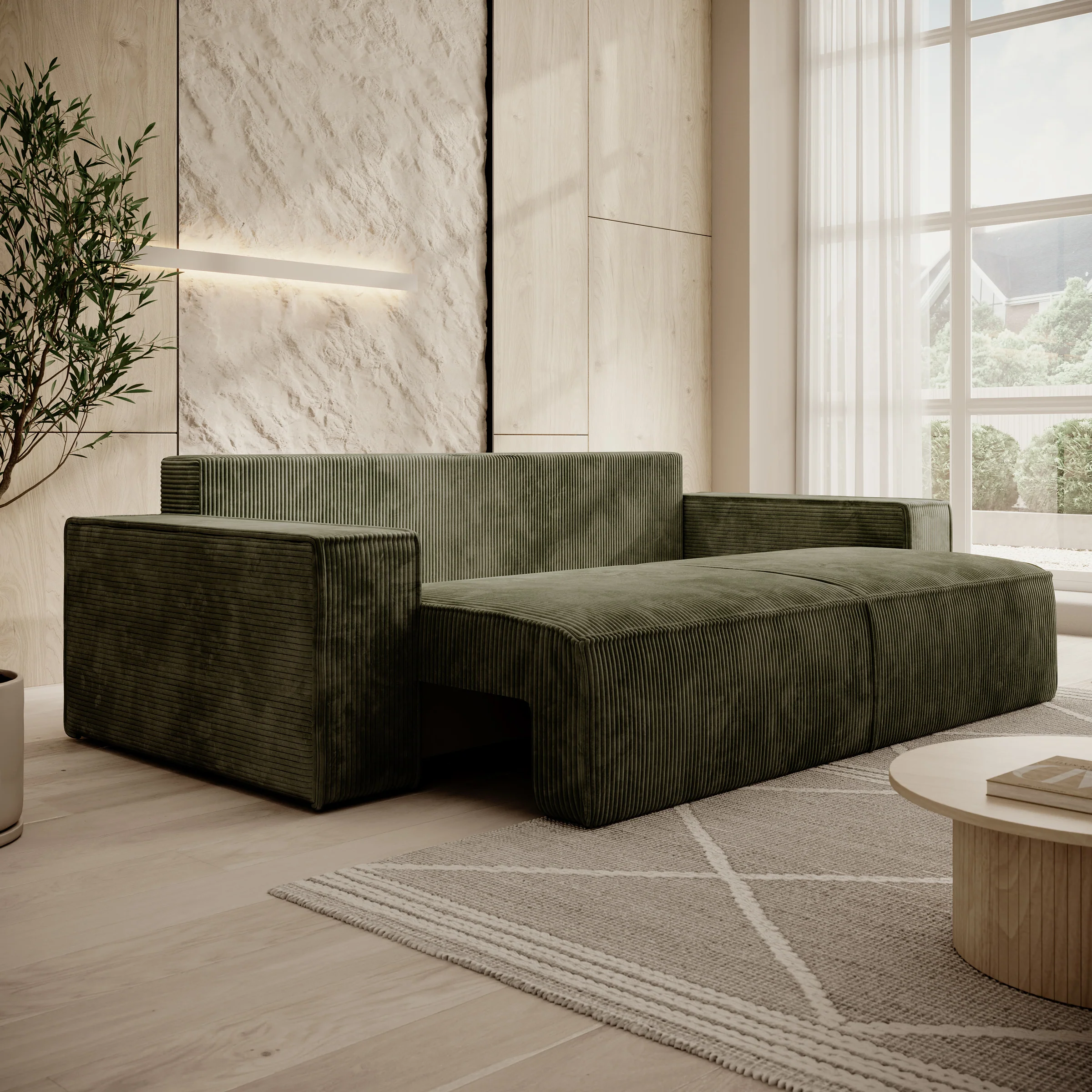 Foster - 3-zitsbank - Ribstof groen - 257x102x85 cm