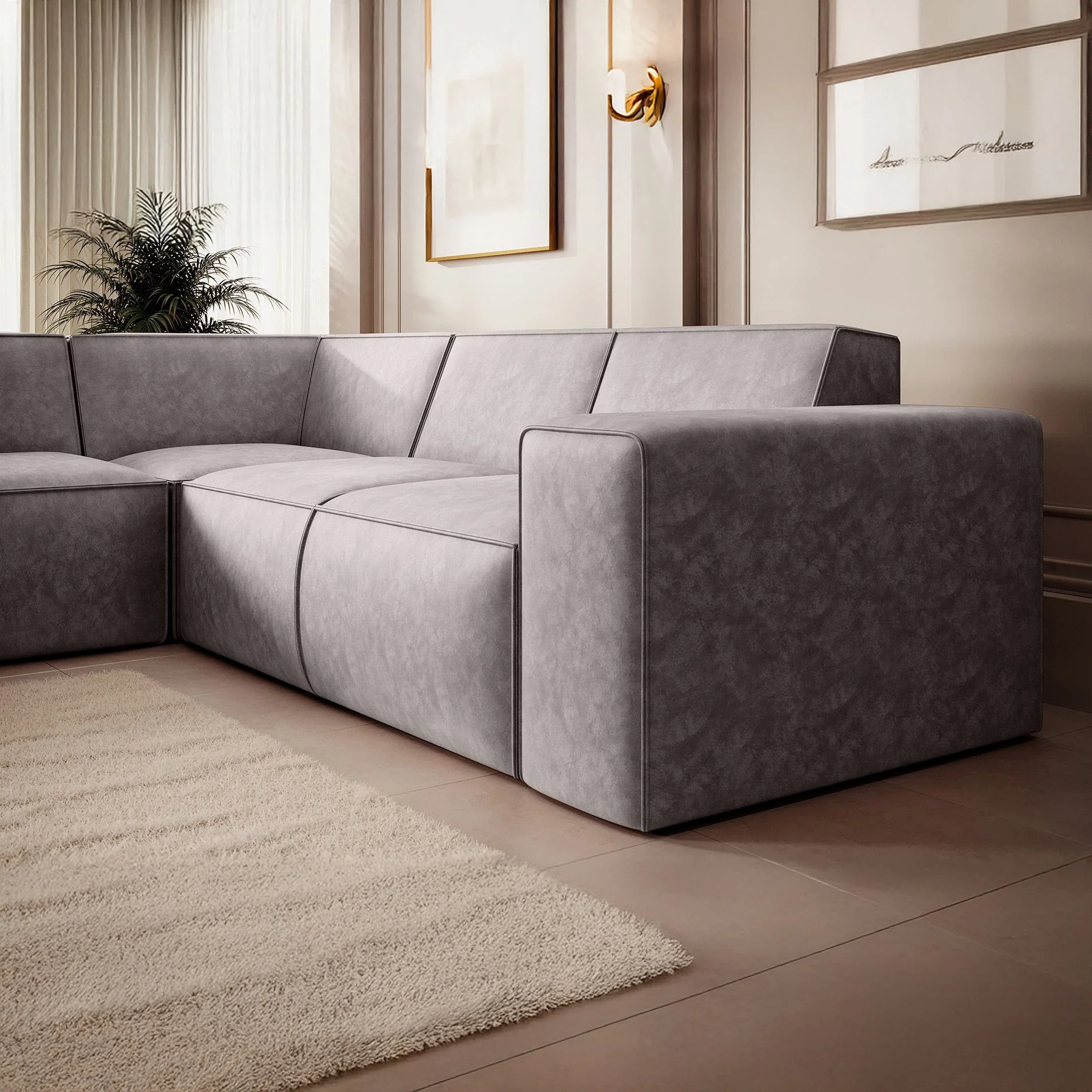 Door de naar buiten gestikte naden en lage rugleuning past de Monet moeiteloos in moderne woonkamers. De bank is bekleed met beige kunstleer in een zachte lederlook, wat zorgt voor een luxe uitstraling en tegelijk makkelijk schoon te houden is.