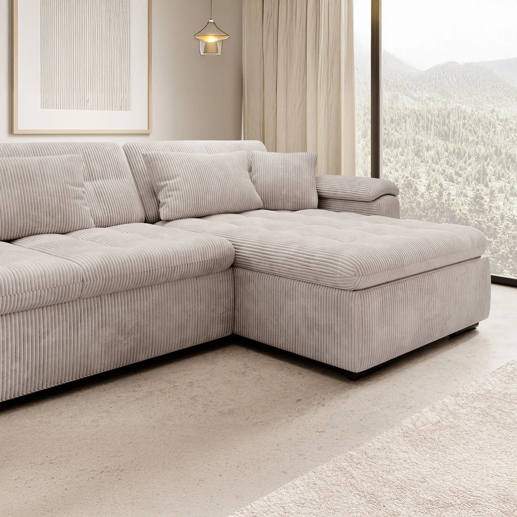 Nicoreta - Hoekbank 5-zits met chaise longue - Ribstof beige - Rechts