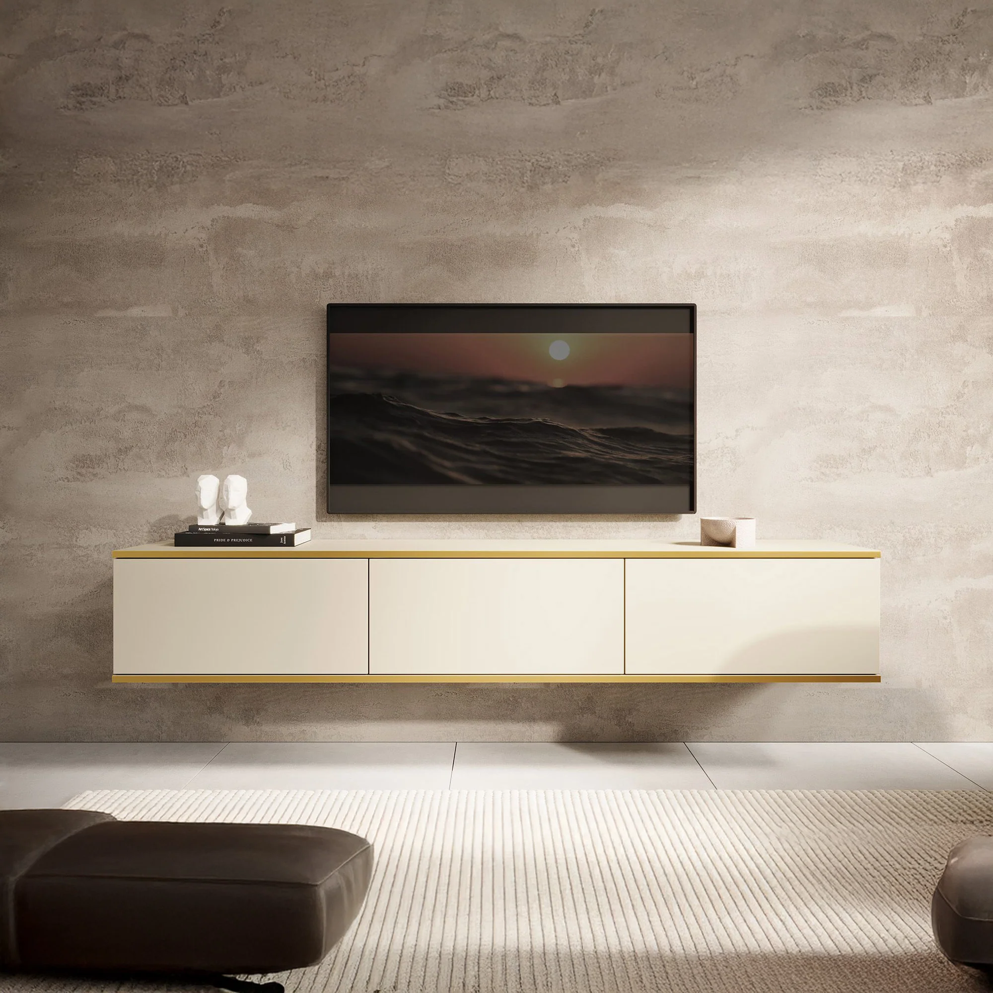 De Orleans is een zwevend tv-meubel met matte finish.
