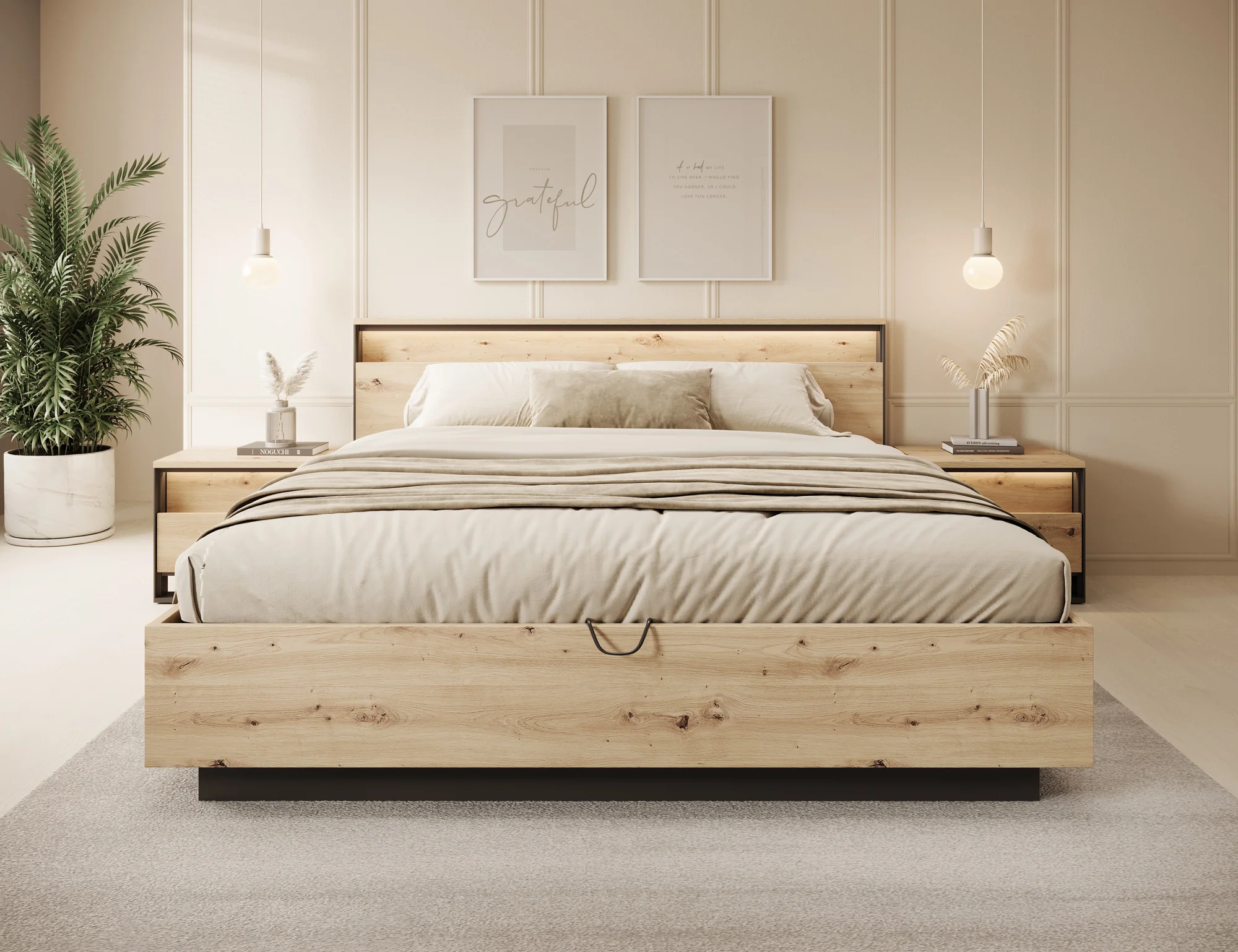 Quarry - Tweepersoonsbed met opbergruimte - Eiken - 180x200 cm